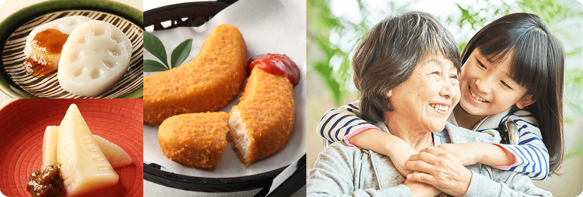様々な年代の方にお召し上がりいただきたいという思いから、あえて「介護食」とはせずに「やわらか食」としております。