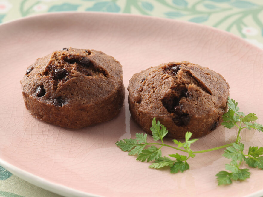 ガーナ産カカオマスのスイートチョコレートを使用した、甘みとほんのりビターな生地に、チョコチップを練り込みました。ふんわりとした生地とチョコチップの食感の差をお楽しみください。 ※最終製品の生地に練り込まれたスイートチョコレートのカカオマスは、ガーナ産カカオ豆から作られています。