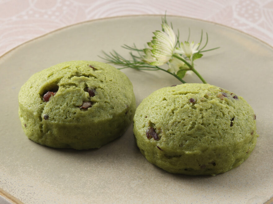 静岡県産緑茶の風味が特長の生地に、北海道十勝産の小豆のかのこを練り込みました。緑茶の香りと甘いかのこが絶妙な、ふんわりしっとりとした食べやすい蒸しぱんです。