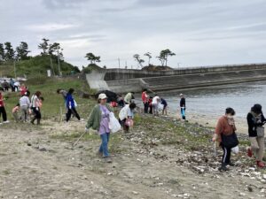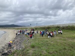 9月13日(土)、Ocean Conservancy主催「国際海岸クリーンアップ」として、気仙沼工場社員および家族など105名がお伊勢浜海水浴場の清掃を実施しました。昨年より多くの方が参加し、環境に対する関心の高さがうかがえました。当日はあいにくのお天気で活動終盤から少し雨が降り出し、活動時間は40分となりましたが、安全に活動を終えました。今回の清掃活動によって、プラ破片や漁具など、重量は約153kgのゴミを収集しました。