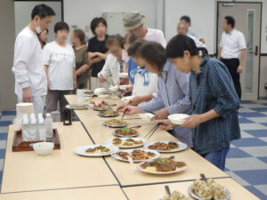 締結式後には、提供食材が安全安心のもとに生産されていることを知っていただくため、工場見学を実施し、アレンジ調理したハンバーグ、牛丼の具、チキンボールをご試食いただきました。